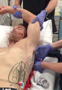 The patient presents with the humerus fixed in an elevated position. The patient is likely to be attempting to hold the arm up to limit pain and may be fatigued or distressed by this. The mechanism of dislocation is either a sudden force applied to the arm in full abduction (fall onto arm while elevated/abducted, wave hitting while body surfing with arm in this position), or a sudden pull during a fall (grabbing a banister when falling down stairs). Check the axillary nerve as this may be stretched during the dislocation