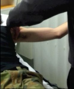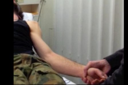 Analgesic position 2 – move the arm to the position of most comfort for them, with a ‘hold.’ This is a firm steady axial hold (not a pull) designed to move the humeral head towards where it needs to be, taking off some of the stretch from the capsule (reducing pain), and providing confidence to the patient that you have taken control of the limb. Once you are in this position, it can be useful to ask the patient their pain level, and explain again what you are going to do.